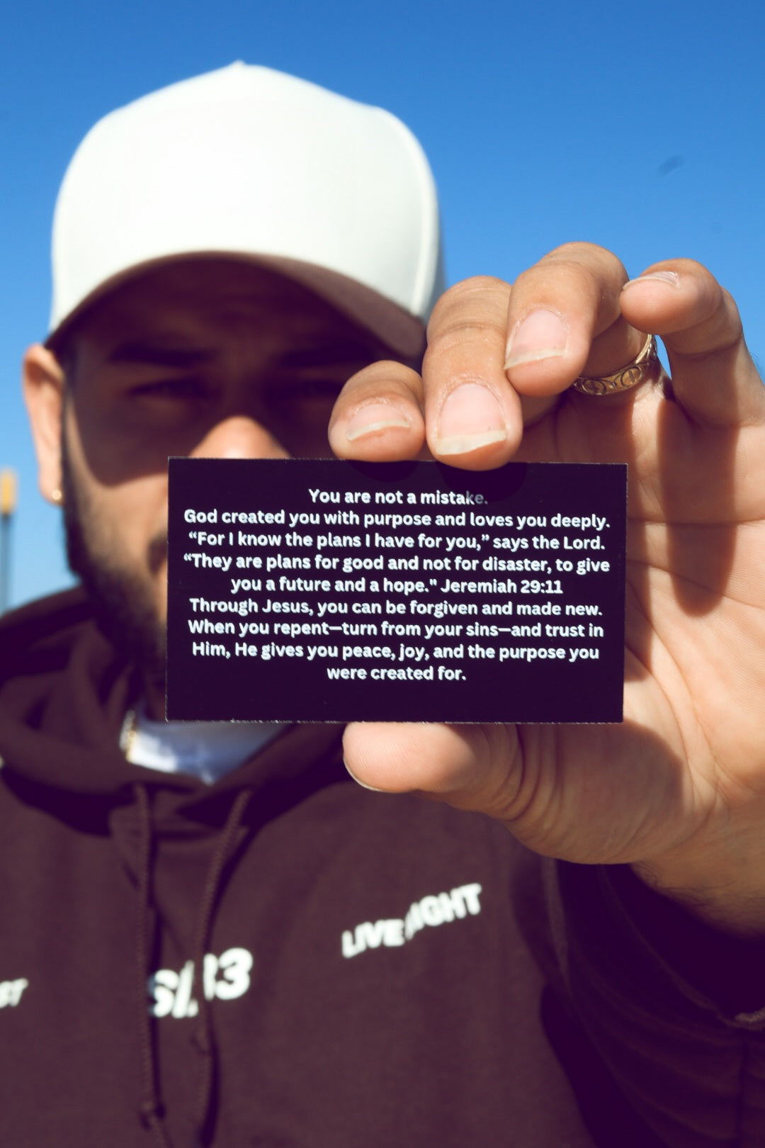 This is the perfect hoodie for encouragement, conversation and evangelism. The bold message on the back will stand out in any room. When you wear this it gives you a confidence to spread the gospel. Because of that we added a free 10 pack of our 633 impact cards for those moments when a person reacts to the message on the back and you feel led to take the conversation beyond the hoodie.