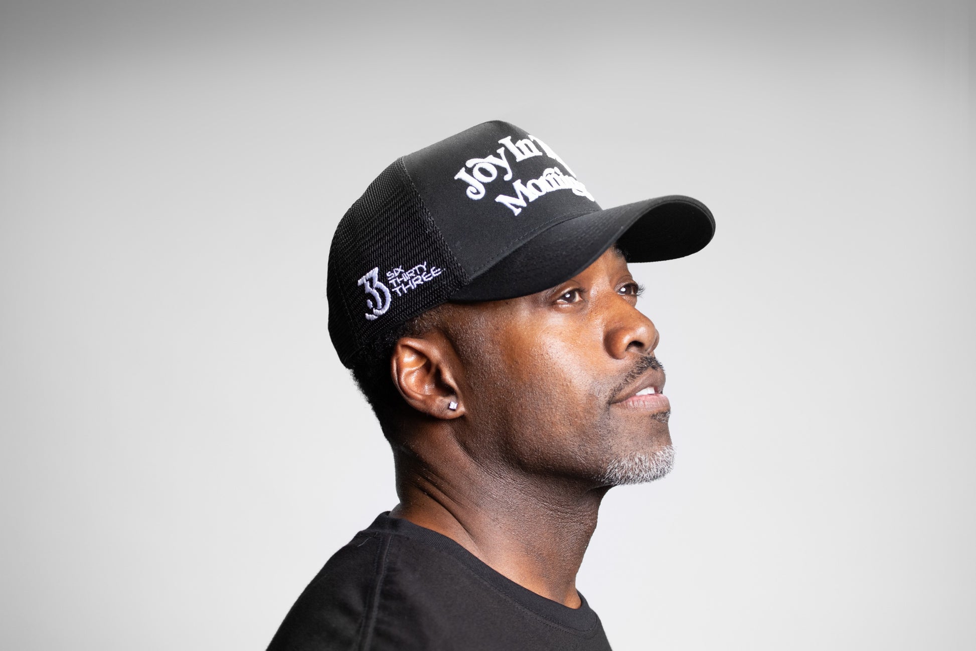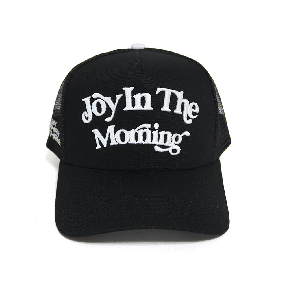 This 5 panel hat is cotton in the front and mesh on the back. It's a snap back so It's one size fits all. Pair this with your Joy Tee or just rock the hat by itself.
